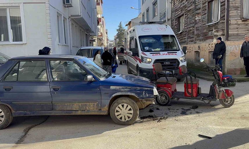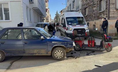Edirne'nin merkez Mithatpaşa Mahallesi sınırlarında meydana gelen kazada, iddialara göre R.K. yönetimindeki 22 NN 532 plakalı otomobil ile V.S.'nin kullandığı elektrikli motosiklet çarpıştı. Çarpışmanın etkisiyle motosiklet devrildi ve sürücü V.S. ile yanındaki 2 çocuk yola savrularak yaralandı.
