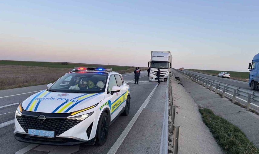 Edirne-Havsa yolunda tır bariyerlere çarptı