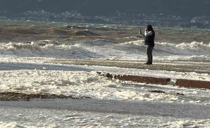 Edremit’te lodos Altınkum sahilini köpüğe boğdu