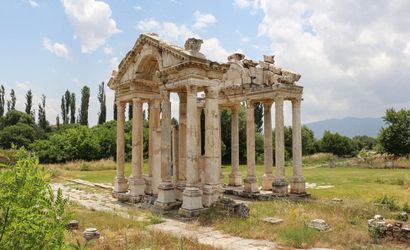 Aphrodisias, Antik Karia bölgesinde, Aydın ili Karacasu/Geyre yakınlarında yer alıyor. Aphrodite kültü, mermer ocakları ve heykeltraşlık atölyeleriyle antik dönemin heykel sanatı ve kentsel temsil geleneğinde seçkin bir konuma sahip olan kent, korunmuş mimari dokusuyla 2017 yılında UNESCO Dünya Miras Listesine dâhil edildi. Bugün kentte New York Üniversitesi ve Oxford Üniversitesi gibi uluslararası kurumların da katıldığı bilimsel çalışmalar yürütülüyor.