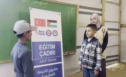 Eğitim-Bir-Sen ve Deniz Feneri Derneği, Gazze’de "Akif İnan Eğitim Çadırı" kurdu