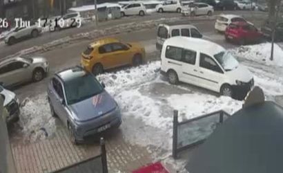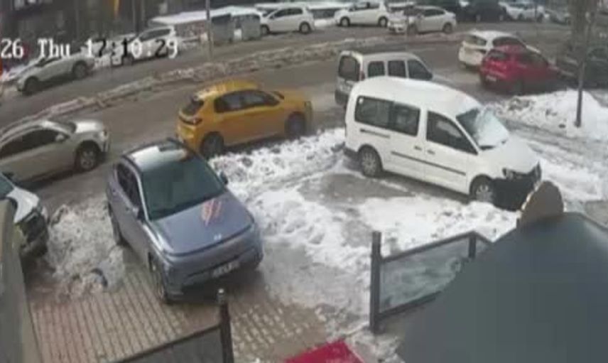 Kaza anı bir iş yerinin güvenlik kamerasına yansıdı. Olay yerinde polis ekipleri inceleme gerçekleştirdi.