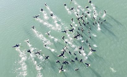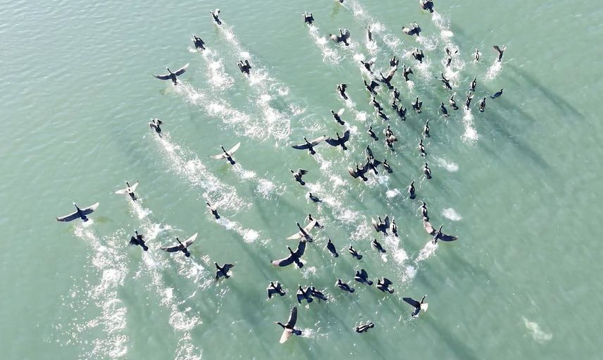 Görüntülerde, kara bataklar gölün su yüzeyinde koşar adımlarla ilerlerken görülüyor. Bir süre su üzerinde ilerleyişlerini sürdüren kuşlar, ardından kanat çırparak havalandı ve gökyüzüne doğru yükseldi. Bu anlar, soğuk havanın arasına serpiştirilen sessiz ve etkileyici bir doğa gösterisi sundu.