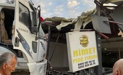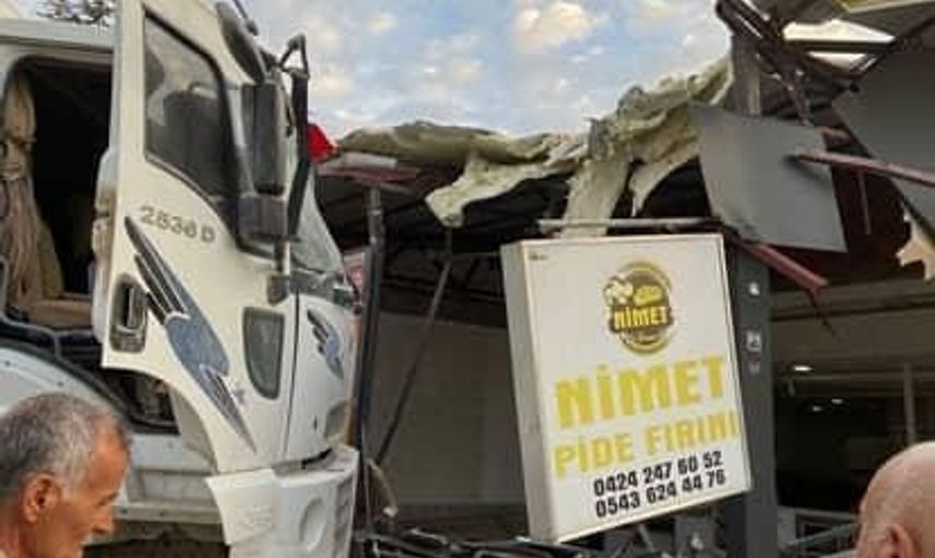 ELAZIĞ’DA FRENİ PATLAYAN KAMYON, EKMEK FIRININA DALDI. FIRINDA KİMSENİN OLMAMASI BÜYÜK BİR FACİAYI ÖNLEDİ
