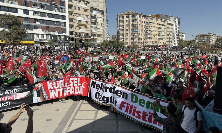 İsrail'in Gazze ve Küresel Sumud Filosu'na gerçekleştirdiği saldırılar, Elazığ'da "Gazze Kararlılık Yürüyüşü ve Aksa Tufanı Mitingi" ile protesto edildi.