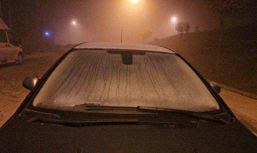 Gece saatlerinde hissedilen soğukların artmasıyla birlikte hava sıcaklığı sıfırın altına düştü ve araç camlarında buz tabakaları oluştu.