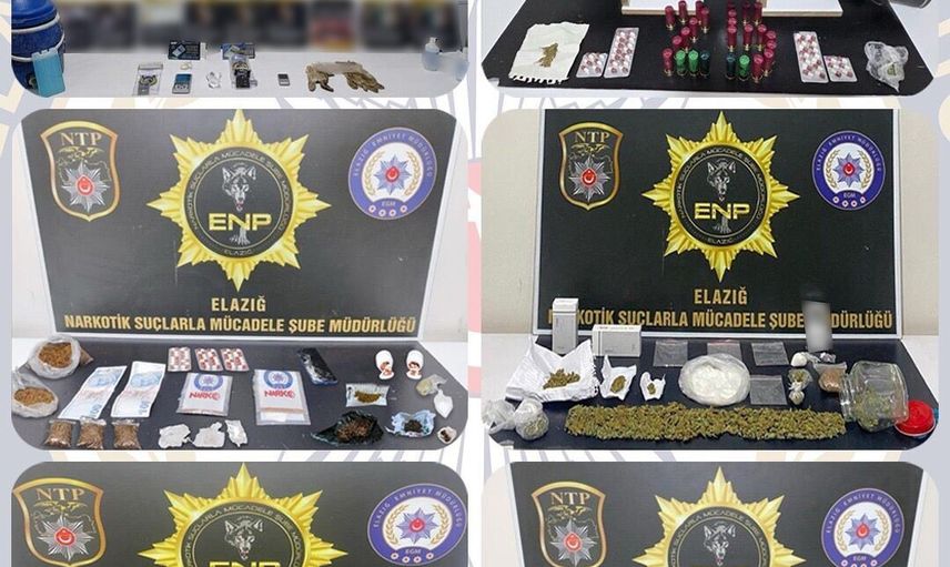 Elazığ Cumhuriyet Başsavcılığı koordinesinde yürütülen çalışmalarda, İl Emniyet Müdürlüğü Narkotik Suçlarla Mücadele ve Asayiş Şube Müdürlüğü ekipleri tarafından son bir ay içinde çok sayıda uyuşturucu madde ve silah ele geçirildi.
