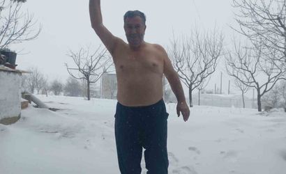 Mahalle sakinlerinden İlhami Çelik, sabah saatlerinde başlayan ve kent genelinde halen etkisini sürdüren kar yağışını kutlamak amacıyla üstünü çıkarıp dışarı çıktı. Çelik, vücudunun bazı bölümlerini yağan karla ıslatırken o anları cep telefonu kamerasıyla kayda aldı.