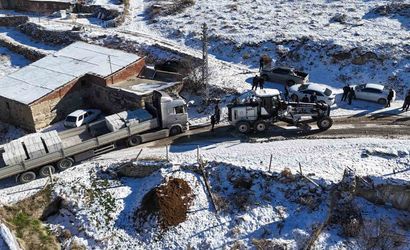 Elazığ'da etkili olan kar yağışı sırasında Körpe köyü yolunda mahsur kalan bir tır için İl Özel İdaresi ekipleri bölgeye intikal etti.