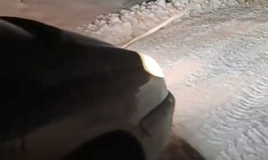 Elazığ'ın Kovancılar ilçesine bağlı Yenidam köyü Beroş mezrası yolunda, yoğun kar yağışı nedeniyle bir sürücü aracıyla yolda mahsur kaldı.