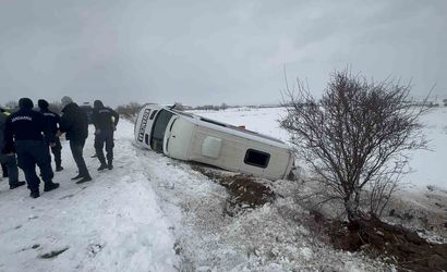 Kar yağışının etkili olduğu Elazığ'da, Elazığ-Bingöl kara yolunun Mollakendi mevkiinde bir minibüsün şarampole devrilmesi sonucu 9 kişi yaralandı.