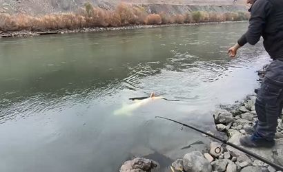 Elazığ'da Murat Nehri'nde 60 kiloluk dev turna balığı yakalandı