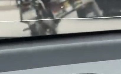 Görüntüler, yoldaki başka bir araçta bulunan vatandaşın cep telefonu kamerasına yansırken, motosiklet sürücüsü kısa süre sonra gözden kayboluyor.