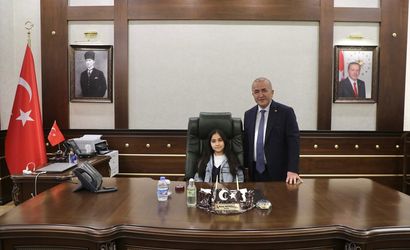 Vali Hatipoğlu, bu hayale kayıtsız kalmayarak küçük kızı ve babasını Valilik makamında ağırladı. Eylül Mina ile bir süre sohbet eden Hatipoğlu, eğitimine dair önemli tavsiyelerde bulundu ve daha sonra kısa bir süre için makam koltuğunu ona devretti.