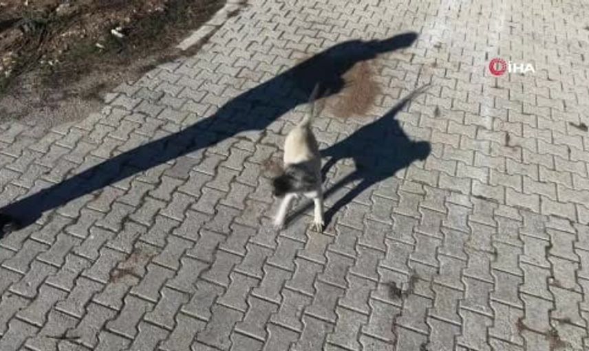 Köpek dronun hareketlerine göre onu takip etti; dron hızlandığında ise peşinden koşup yakalamaya çalıştı.