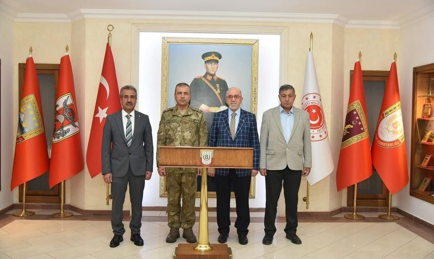 Elazığ Ticaret Borsası Yönetim Kurulu Başkanı Mehmet Ali Dumandağ, Meclis Başkanı Aydın Torgut ve Yönetim Kurulu Başkan Yardımcısı Memet Emin Ayaz ile birlikte 8. Kolordu Komutanı Tümgeneral Ümit Durmaz ile bir araya geldi.