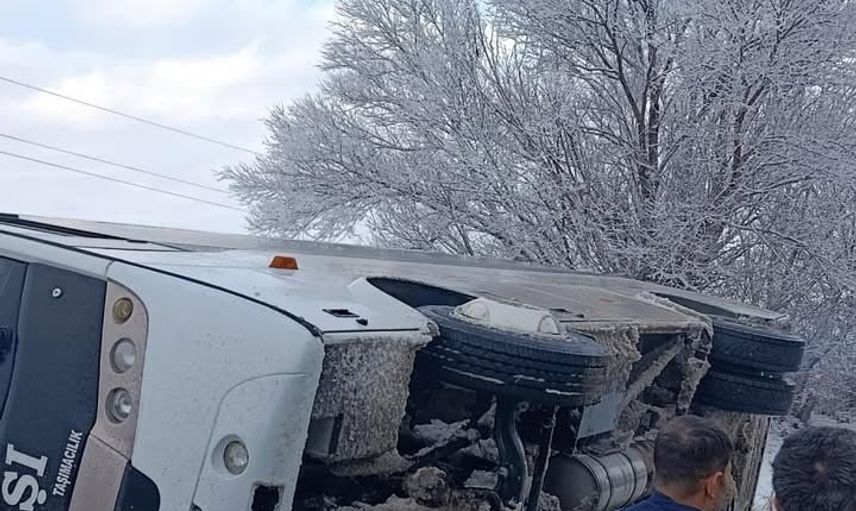 Elbistan-Çoğulhan karayolunda seyir halindeki işçi taşıyan servis aracı, kaygan zemin nedeniyle kontrolden çıkarak devrildi. Araç yol kenarına savrularak yan yatarken, içinde bulunan 23 işçi kendi imkanlarıyla yara almadan araçtan çıktı.