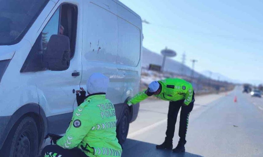 Elbistan'da ticari araçlara kış lastiği denetimi