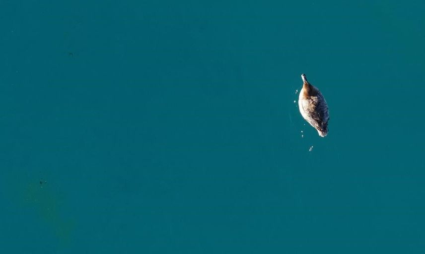 Görüntülerde, elmabaş patka ördeklerinin sürüler halinde su yüzeyinde süzüldüğü anlar dronla kaydedildi. Kayıtlar, bölgedeki doğal yaşamın sakin ve estetik anlarını gözler önüne serdi.