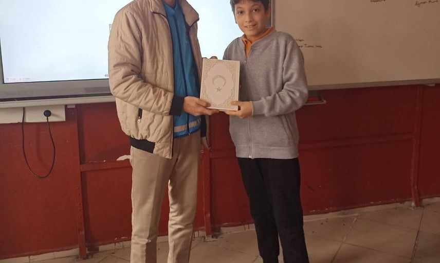 İlçe Müftülüğü görevlileri öğrencilere Kur'an-ı Kerim'in anlamı ve önemi hakkında kısa bilgilendirme sundu. Bilgilendirmenin ardından öğrencilere hediyeleri takdim edildi.