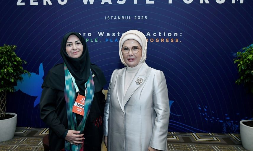 Cumhurbaşkanı Recep Tayyip Erdoğan'ın eşi ve Sıfır Atık Vakfı Onursal Başkanı Emine Erdoğan, Uluslararası Sıfır Atık Forumu çerçevesinde İran Cumhurbaşkanı Yardımcısı ve Çevreyi Koruma Kurumu Başkanı Shina Ansari ile bir araya geldi.