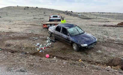 Araç savrularak takla attı ve şarampole devrildi. Kazada sürücü ile yanında bulunan 14 yaşındaki bir çocuk yaralandı.