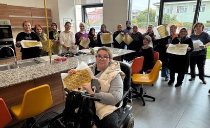 Engelsiz Hobi Atölyeleri kapsamında gerçekleştirilen çalışmada, anne ve veliler Adapazarı Sosyal Gelişim Merkezi (SGM) mutfak sınıfında balmumu kaplı kumaşların gıdayla temas açısından kullanım alanları hakkında bilgi aldı. Mutfak Becerileri eğitmeni, balmumu kumaşların saklama çözümleri ve hijyen kuralları üzerine yönlendirmeler yaptı. Ardından Tasarım Atölyesi eğitmeni eşliğinde katılımcılar kendi bio bezlerini tasarlayıp üretimini gerçekleştirdi.