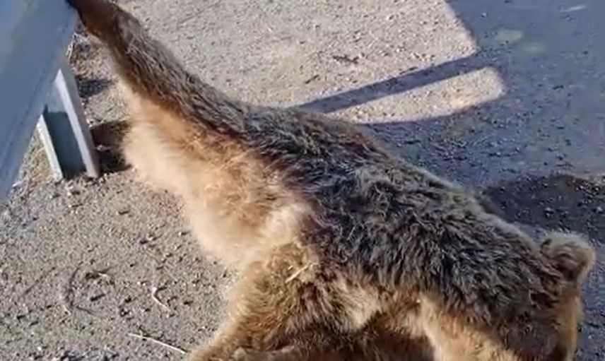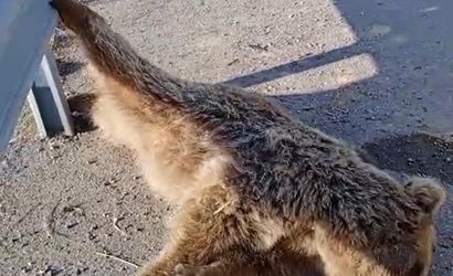 VAN’DA KARA YOLUNA ÇIKARKEN ARAÇ ÇARPAN AYI TELEF OLDU.