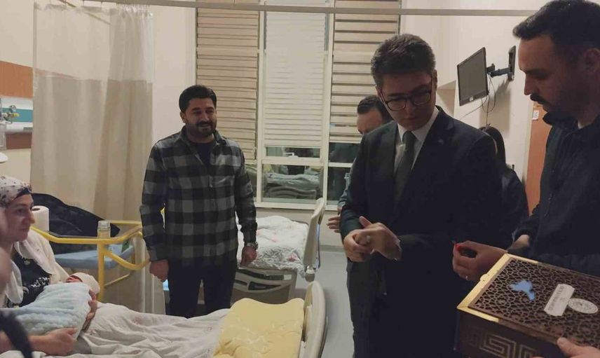 Hastane personelinin yeni yılını kutlayan Kaymakam Murat Karaloğlu, gün içinde doğan bebeklerin ailelerine hediye takdim etti. 2026'nın ilk bebeği Mert Buğra'ya Karaloğlu tarafından çeyrek takıldı. Kaymakam bebeği alıp severken «Hayırlı olsun Rabbim devletine milletine hayırlı evlatlar eylesin» dedi.
