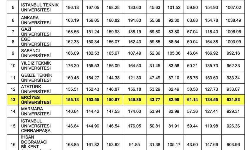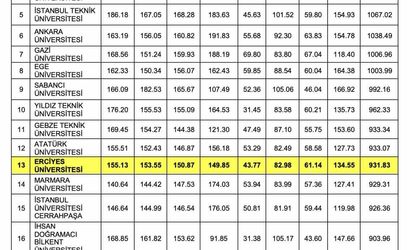 Açıklanan verilere göre, Erciyes Üniversitesi, Türkiye sıralamasında yükselişine devam ederek önemli bir başarı kaydetti.