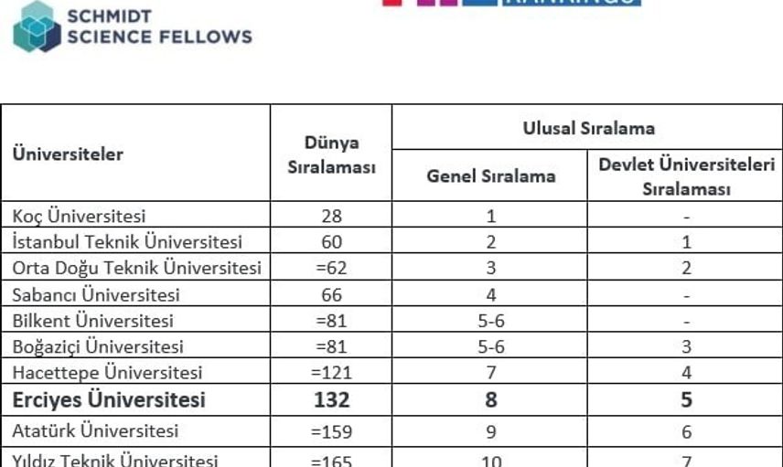 Times Higher Education (THE) tarafından ilk kez yayımlanan 2026 Disiplinler Arası Bilim Sıralaması (Interdisciplinary Science Rankings, ISR) sonuçlarına göre Erciyes Üniversitesi, dünya çapında önemli bir konuma ulaştı. Schmidt Science Fellows işbirliğiyle hazırlanan ve üniversitelerin disiplinler arası bilim katkılarını ölçen bu sıralamaya 94 ülkeden 911 üniversite katıldı. Erciyes Üniversitesi, bu listede dünya genelinde 132. sırada yer alırken, ulusal bazda devlet üniversiteleri arasında 5. sırada bulundu.