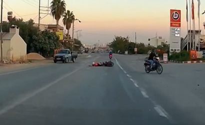 Edinilen bilgilere göre, aynı şeritte ilerleyen motosikletlerden biri aniden şeridini değiştirip benzin istasyonu yönüne geçmek istedi. Bu esnada geçiş yapan diğer motosiklet sürücüsü dengesi bozuldu ve düşmeye başladı. Kazanın tüm anı, karşı şeritten gelen otomobilin araç kamerasına saniye saniye yansıdı.
