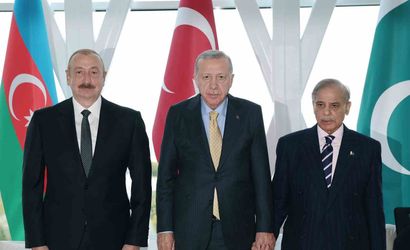 CUMHURBAŞKANI RECEP TAYYİP ERDOĞAN, BAKÜ'DE AZERBAYCAN CUMHURBAŞKANI İLHAM ALİYEV VE PAKİSTAN BAŞBAKANI MUHAMMED ŞAHBAZ ŞERİF İLE BİR ARAYA GELDİ.