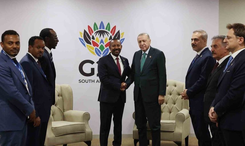 Cumhurbaşkanı Recep Tayyip Erdoğan, G20 Liderler Zirvesi için bulunduğu Güney Afrika Cumhuriyetinde Etiyopya Başbakanı Abiy Ahmed Ali ile bir araya geldi.