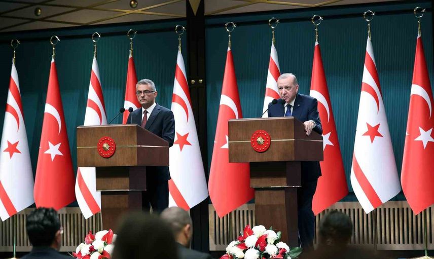 Cumhurbaşkanı Recep Tayyip Erdoğan, KKTC Cumhurbaşkanı Tufan Erhürman ile yaptığı baş başa ve heyetler arası görüşmelerin ardından ortak basın toplantısı düzenledi. Erdoğan, 19 Ekim 2025 tarihindeki Cumhurbaşkanlığı seçimlerinin huzur içinde geçtiğini belirterek Erhürman'ı tebrik etti ve Kuzey Kıbrıs Türk Cumhuriyeti’nin kuruluşunun 42. yıl dönümünü iki gün sonra idrak edeceklerini anarak Kıbrıs Türklerine selamlarını iletti.