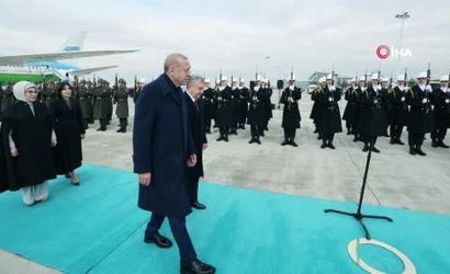 Cumhurbaşkanı Recep Tayyip Erdoğan, gelen konuk için havalimanında yapılan karşılama töreninde misafirini karşıladı.