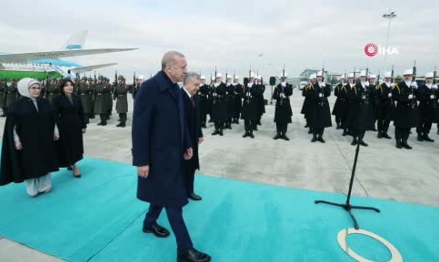 Erdoğan, Mirziyoyev'i Havalimanında Karşıladı