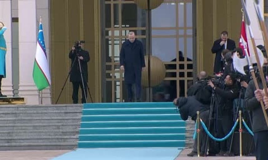 Cumhurbaşkanı Recep Tayyip Erdoğan, Özbekistan Cumhurbaşkanı Şevket Mirziyoyev'i resmi törenle karşıladı.