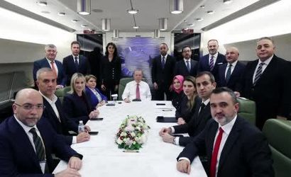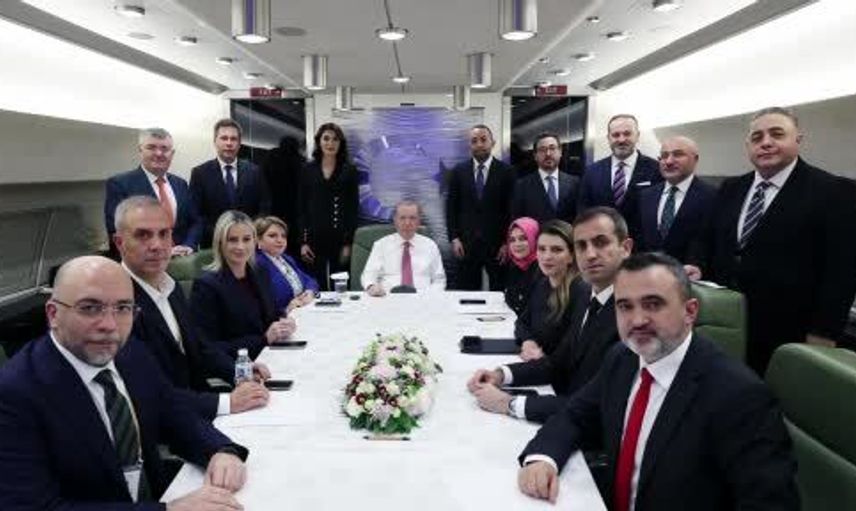 Cumhurbaşkanı Erdoğan, Türkmenistan dönüşü basın mensuplarıyla sohbet etti