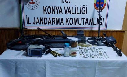 Operasyonda ele geçirilenler: 99 adet muhtelif dönemlere ait sikke ve obje, 2 adet dedektör, 1 adet alan tarama yeraltı görüntüleme cihazı, 2 adet kazma ve 1 adet balyoz.