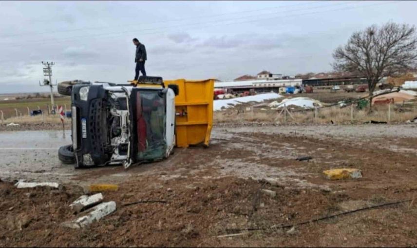 Olayın Detayları: Konya'nın Ereğli ilçesinde, saat 15.15 sıralarında Konya Adana karayolu üzeri Bulgurluk Mahallesi mevkisinde seyir halindeki 07 CIV 627 plakalı kamyon, sürücü E.K.'nin direksiyon hakimiyetini kaybetmesi sonucu kontrolden çıkarak devrildi.