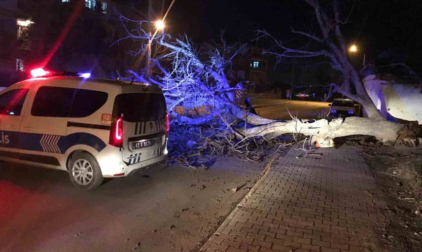 Konya'nın Ereğli ilçesinde sabah saatlerinden itibaren etkili olan şiddetli rüzgar, reklam tabelalarını ve ağaçları devirdi. Fırtına, ilçe merkezi ve çevresinde çeşitli noktalarda hasara yol açtı.