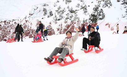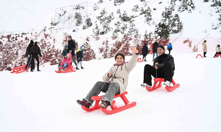 Ergan Dağı'nda 70 öğrenci kızakla doyasıya eğlendi