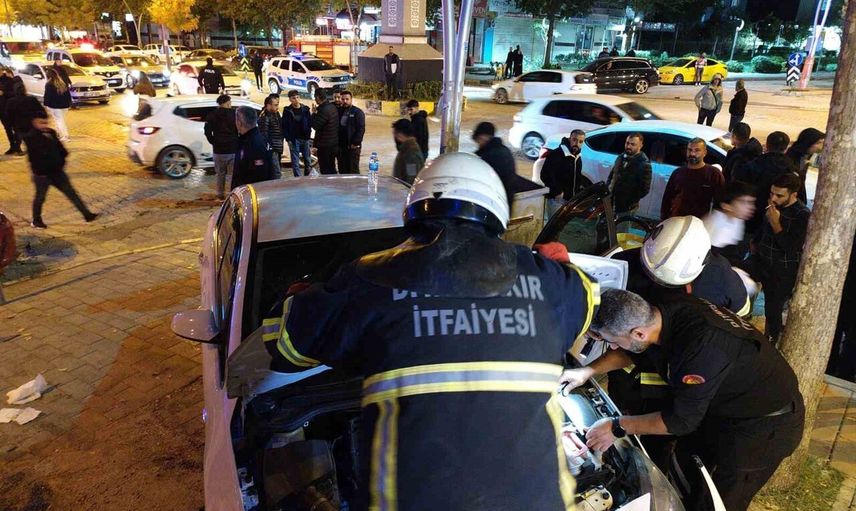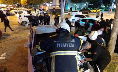 Kaldırıma çıkan araç merdivene çarptı; yaralılar itfaiye ekiplerince araçtan çıkarıldı