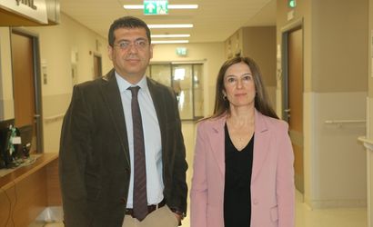 Sağlık Bilimleri Üniversitesi Adana Tıp Fakültesi Dekan Yardımcısı ve Tıbbi Onkoloji Kliniği Öğretim Üyesi Prof. Dr. Berna Bozkurt Duman (sağda) ve Sağlık Bilimleri Üniversitesi Adana Tıp Fakültesi Dekanı Prof. Dr. Timuçin Çil (solda), Meme Kanseri Farkındalık Ayı dolayısıyla hastanede tedavi gören kişileri ziyaret etti. Duman ve Çil, açıklamada bulundu.