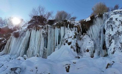GİRLEVİK ŞELALESİ BUZ TUTTU, 2 METRELİK BUZ SARKITLARI OLUŞTU