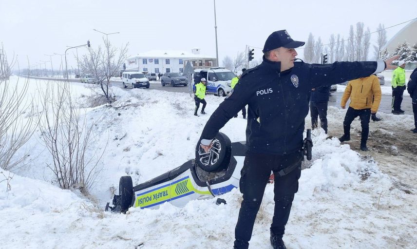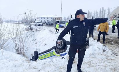 Olay yeri ve zaman: Erzincan-Sivas karayolunun Sarıgöl Mahallesi mevkiinde, öğle saatlerinde kardan dolayı kontrolden çıkan bir polis aracı şarampole yuvarlandı.