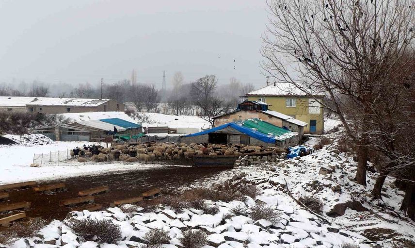 Erzincan'da etkili olan kar yağışıyla birlikte Munzur Dağı eteklerindeki Çağlayan Beldesi ve çevre köylerde zemin ve örtü beyaza büründü.