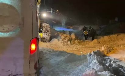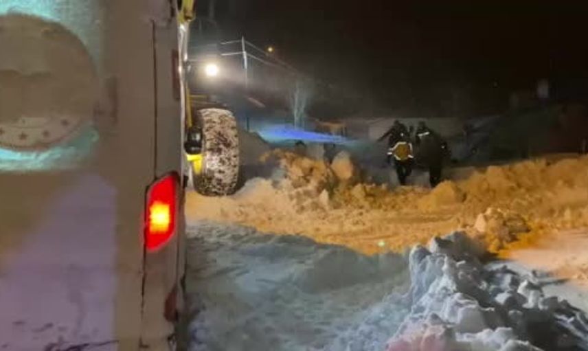 Ambulans karla mücadele ekiplerinin yardımıyla hastaya ulaştı