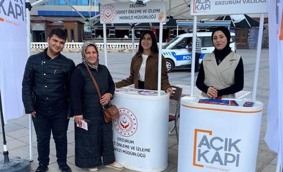 ERZURUM VALİLİĞİ AÇIK KAPI ŞUBE MÜDÜRLÜĞÜ HALKIMIZIN YOĞUN OLARAK BULUNDUĞU ALANLARDA STANT KURARAK, HEM AÇIK KAPI PROJESİ’NİN İŞLEYİŞİ HEM DE "KADINA YÖNELİK ŞİDDETLE MÜCADELE" KONUSUNDA BİLGİLENDİRME ÇALIŞMALARI YÜRÜTÜYOR.
